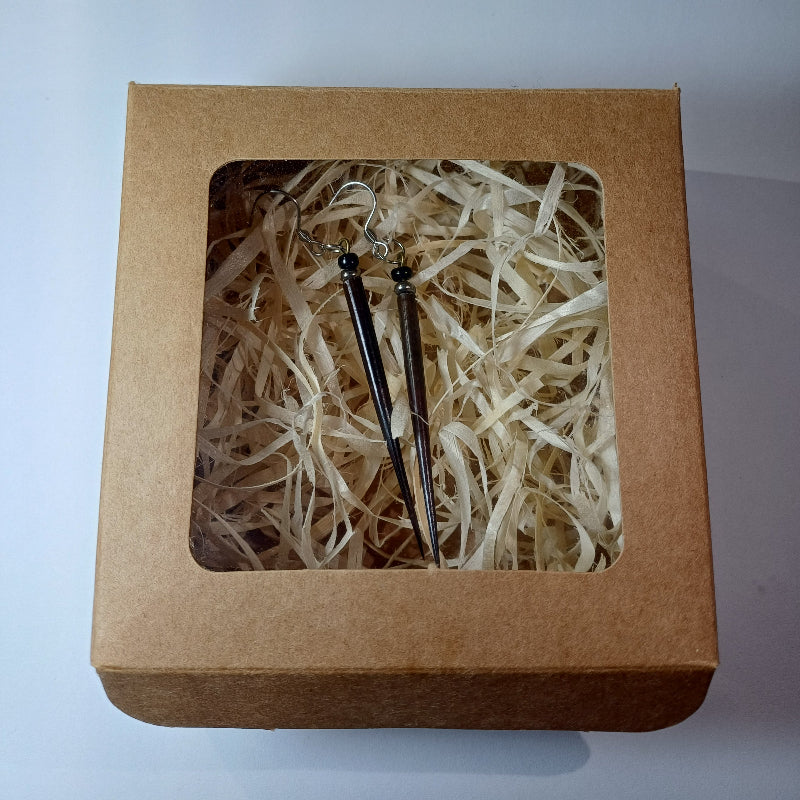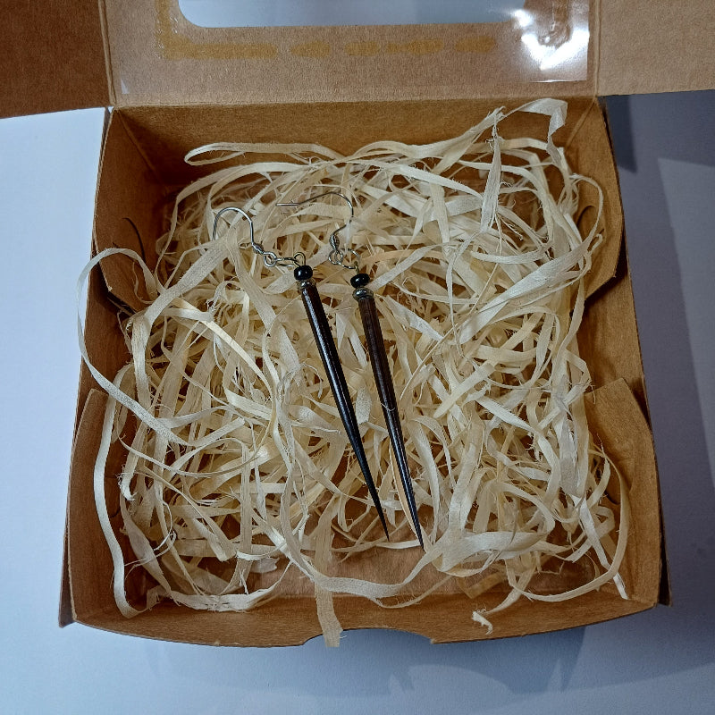EARRINGS - Porcupine Quill - Black tips, chrome and black beads